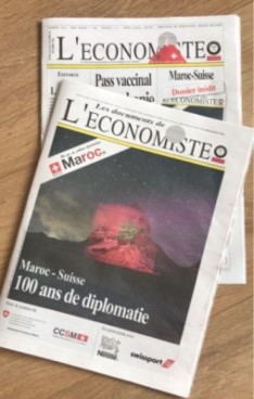 À l'occasion du centième anniversaire de la présence diplomatique suisse au Maroc, le quotidien économique «l'Économiste» a réservé un dossier spécial Maroc-Suisse dans son numéro du vendredi 22 octobre 2021.