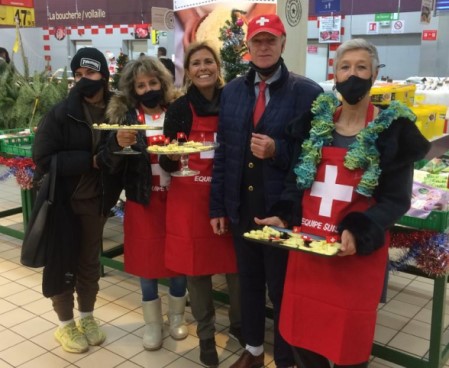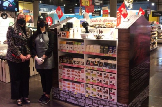Du 6 au 24 décembre 2021, les amateurs de produits suisses se sont donné rendez-vous pour découvrir et déguster des fromages ainsi qu’un large assortiment de chocolats et biscuits suisses, dans le stand de l’Ambassade de Suisse dans plusieurs magasins Carrefour: