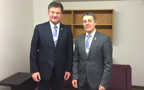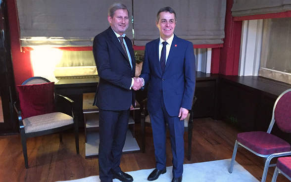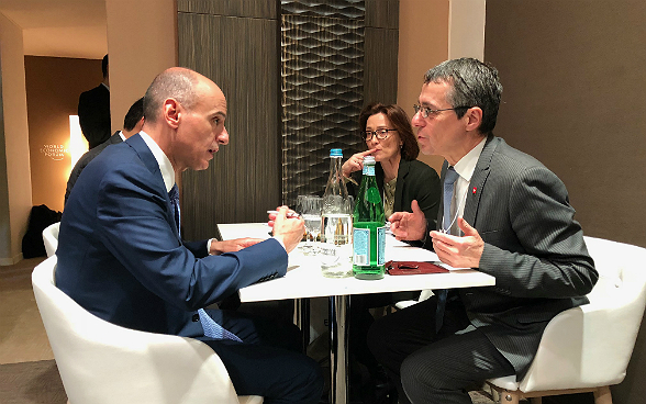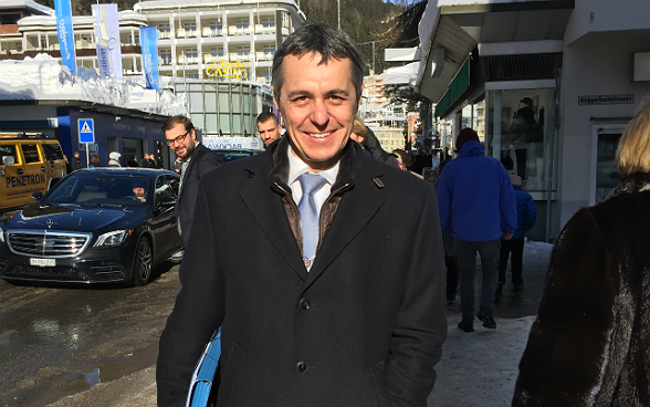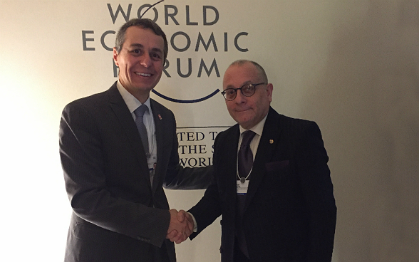 Le conseiller fédéral Ignazio Cassis, chef du Département fédéral des affaires étrangères (DFAE), fera des relations avec l'UE, de la situation au Moyen-Orient et des opportunités économiques de la politique extérieure ses priorités à Davos. C'est dans ce contexte qu'il rencontrera le commissaire chargé de la politique européenne de voisinage Johannes Hahn, également chargé des relations avec la Suisse. Les relations avec l'UE seront par ailleurs évoquées au cours d'entretiens avec plusieurs ministres des affaires étrangères européens. Eu égard à la situation qui prévaut au Moyen-Orient, le conseiller fédéral Cassis prendra part à deux rencontres qui réuniront les ministres des affaires étrangères de la région et aura des entretiens bilatéraux avec l'envoyé spécial de l'ONU pour la Syrie Staffan de Mistura, avec le ministre des affaires étrangères de l'Arabie saoudite Adel al-Jubeir ainsi qu'avec le ministre des affaires étrangères de la Jordanie Ayman Safadi. Les aspects économiques seront au centre des entretiens bilatéraux qui auront lieu avec le ministre des affaires étrangères de l'Argentine Jorge Faurie et le ministre des affaires étrangères de l'Angola Manuel Domingos Augusto.